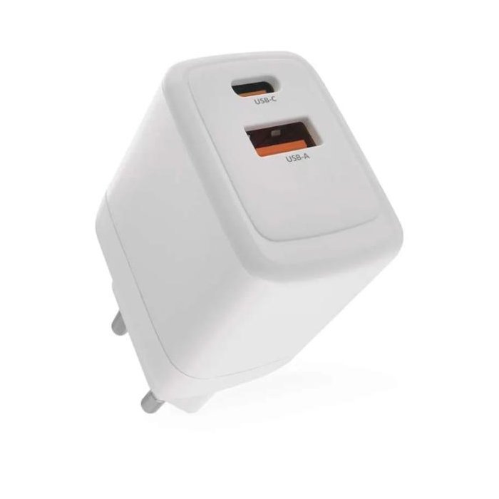 produkt: USB adaptér, max. výstup 1× USB: A: 5 V/3 A - 9 V/2 A - 12 V/1,5 A (18 W); C: 5 V/3 A - 9 V/2,22 A - 12 V/1,67 A (20 W), vstupné napätie: 100-240 V~ 50/60 Hz, nabíjací: fast, počet USB výstupov: 2, ochrana proti preťaženiu, prepätiu a skratu, určené pre: smartphone, tablet, farba: biela, rozmer: 34 × 75 × 23 mm, predajný obal: 1 ks, papierová krabička, záručná doba: 2 roky