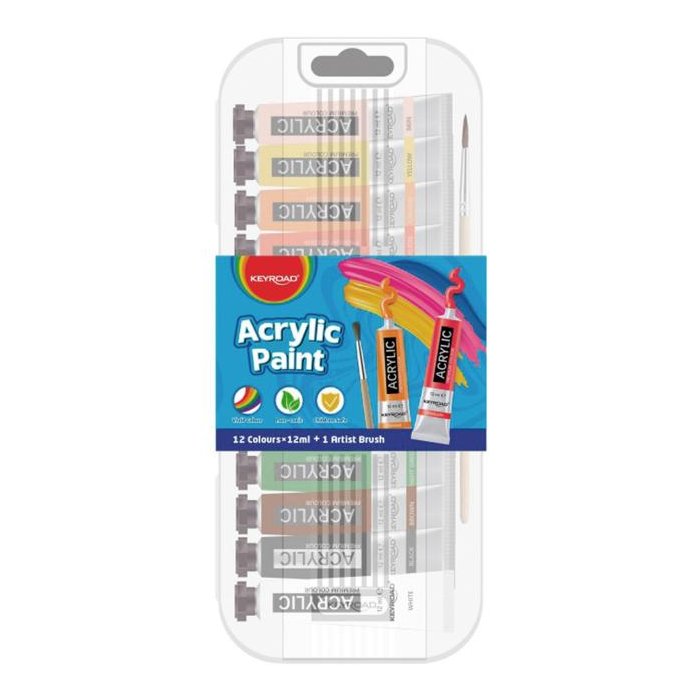 Akrylové farby KEYROAD, 12 x 12 ml, mix farieb