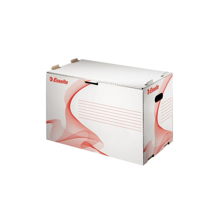 Archívna krabica na prehľadné ukladanie a archiváciu zakladačov. Bočné otvory pre prenášanie, otváranie spredu, predtlač na popis na veku i bokoch. Stabilita pri stohovaní je zaisťovaná vzájomným spojením krabíc pomocou špeciálnych otvorov a úchytov. Kapacita: 10 zakladačov so šírkou chrbta 5 cm, 6 zakladačov so šírkou chrbta 8 cm alebo 6 stojanov na časopisy so šírkou chrbta 8 cm. Väčšie balenie 10 ks.