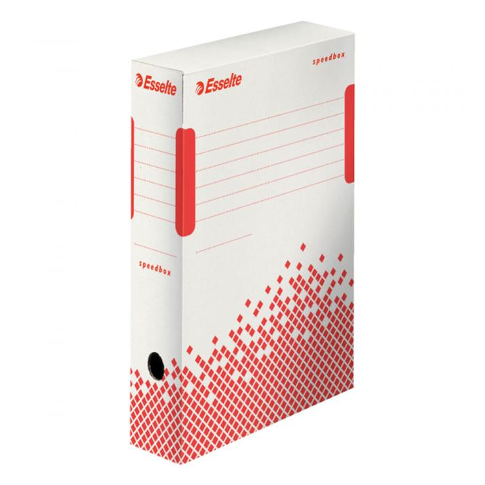 Archívny box z archivačného systému Speedbox. Dvojité bočnice chránia box pred otvorením a spevňujú okolie chrbtového úchytu. Vhodný pre dokumenty formátu A4. Ideálna veľkosť pre archiváciu v policiach, určené pre vertikálnu a horizontálnu archiváciu. Vyrobený zo 100% recyklovanej vlnitej lepenky. Chrbát 80 mm. Väčšie balenie 25 kusov.