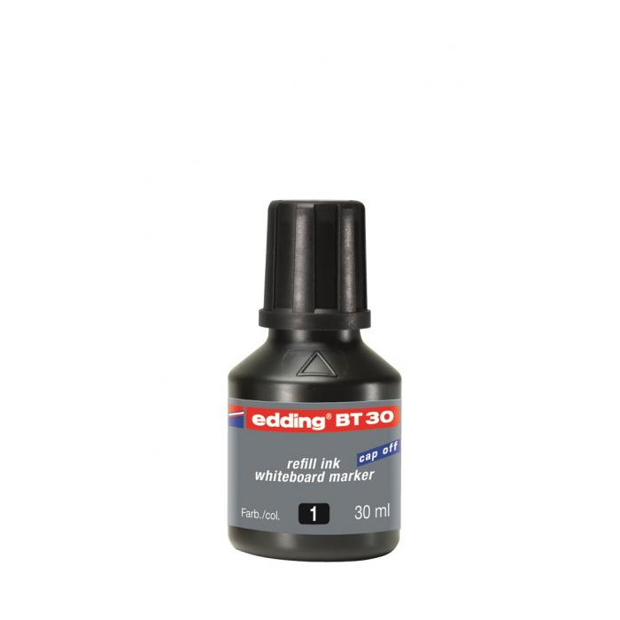Atrament slabého zápachu vo fľaštičke s kvapkovým dávkovačom na dopĺňanie popisovačov edding 250, 361 a 365, určených na biele tabule. Tento chemický prípravok je nebezpečný. Obsah fľaštičky 30 ml.