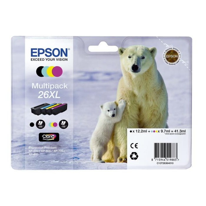 Atramentová náplň Epson C13T263640 CMYK multipack 26XL Claria pre XP-600/700 (3x9,7/12,2ml)