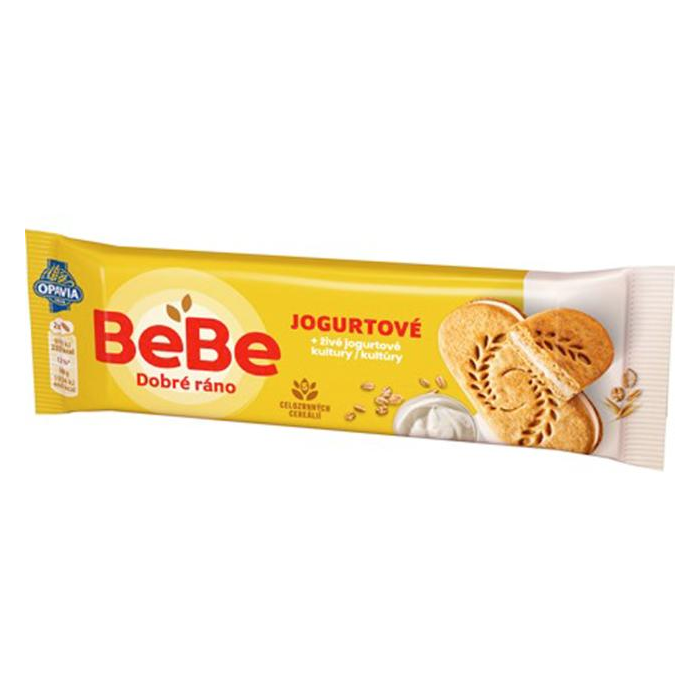 Cereálne sušienky s jogurtovou náplňou (28%). Zdroj vitamínov E, B1 a minerálnych látok vápnika, horčíka a železa.