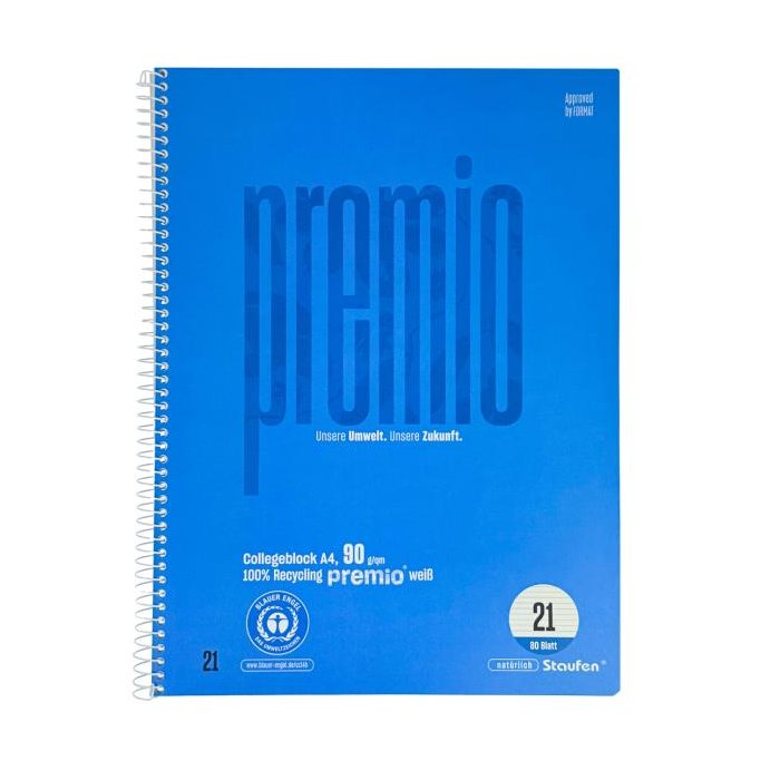 Vysokokvalitný blok formátu A4 s kovovou bočnou špirálou, vyrobený zo 100 % recyklovaného papiera s hmotnosťou 90 g / m².