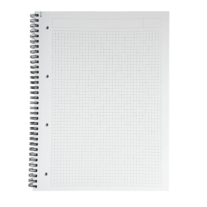 Vysoko kvalitný blok formátu A4 s kovovou bočnou špirálou, vyrobený so satinovaným papierom s hmotnosťou 90 g / m². Dosky z tvrdého hladeného kartónu odpudzuje kvapaliny. Úprava: štvorčeková Počet listov: 80