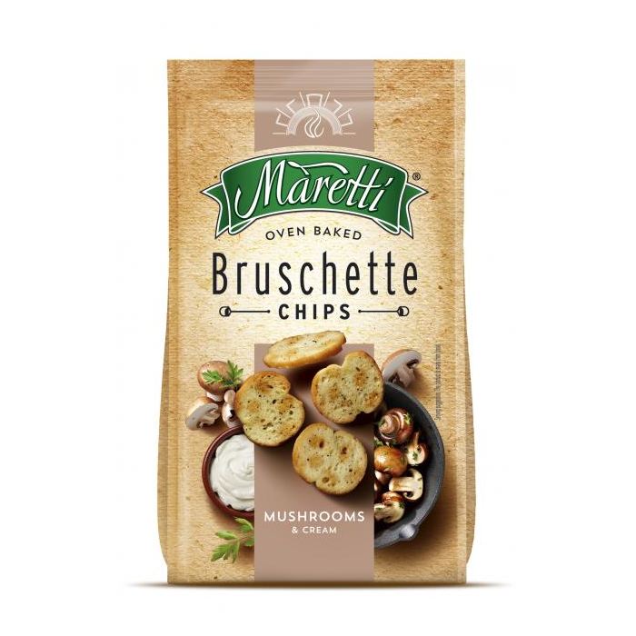 PŠENIČNÁ múka, Rastlinný olej (palmový oleín, antioxidant: extrakty z rozmarínu), Extrudovaná kukuričná múka, Ochucujúca zložka z: huby a smotana 5,5% ( maltodextrín, zvýrazňovače chuti: glutaman sodný, guanylan disodný, inozínan disodný; jedlá soľ, cesnakový prášok, sušená SMOTANA 1,1%, protihrudkujúca látka: oxid kremičitý; koncentrovaná hubová šťava 0,36%; Stabilizátor: guarová guma; Dextróza, Emulgátor: estery mono- a diglyceridov mastných kyselín s kyselinou mono- a diacetylvínnou.
