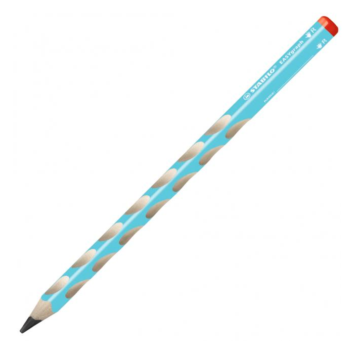 Prvá ergonomicky tvarovaná grafitová ceruzka vyrobená osobitne pre pravákov. Trojhranný dizajn, protišmykové plochy pre uvolnené držanie. Priemer tuhy 3,15 mm, tvrdosť HB vhodná pre písanie i skicovanie. Balenie 12 ks. Farba modrá.
