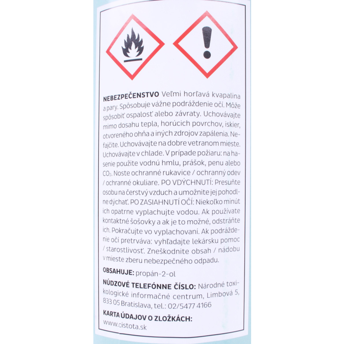 Účinné látky: propán-2-ol 700 ml/l