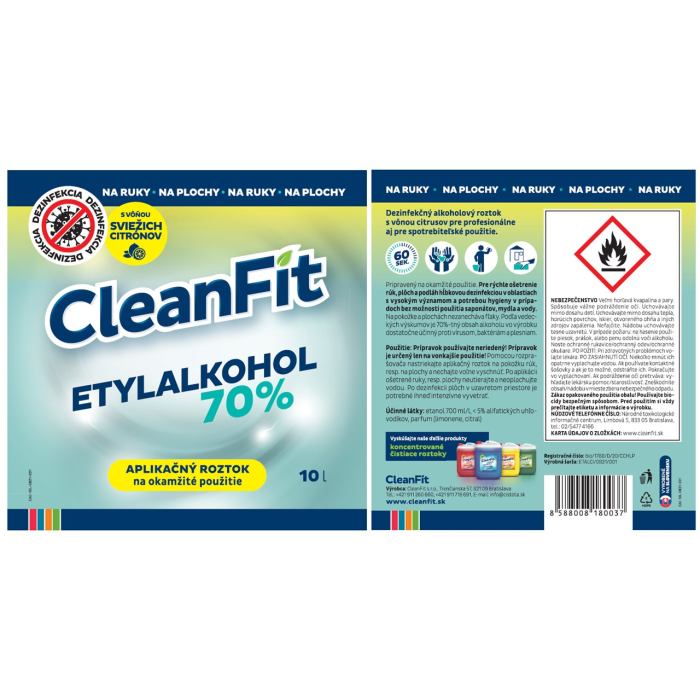 Dezinfekčný alkoholový roztok s príjemnou vôňou citrusov a výťažkom z Aloe Vera pre profesionálne aj spotrebiteľské použitie.