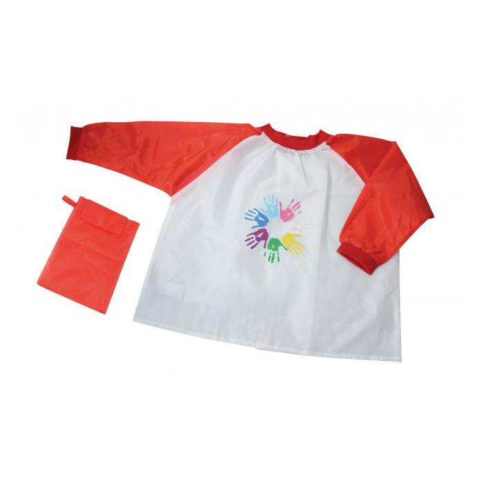 Detská zástera s vreckom na maľovanie pre dievčatá, jedna veľkosť. Zapínanie na suchý zips. Materiál polyester. Farba červená.