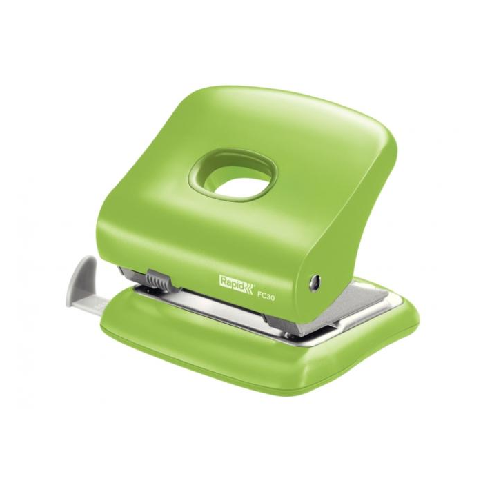Výkonná odolná kovová dierovačka s ramenom a základňou z vystuženého plastu ABS. Vhodná na použitie doma, v škole aj v kancelárii. Predieruje až 30 listov papiera (80 gsm). Pevná kovová konštrukcia zaisťuje dokonalé výsledky dierovania. Rameno a základňa z vystuženého plastu ABS. Zásobník na odrezky v plastovej základni, jednoduché vyprázdňovanie. Záruka 5 rokov. Farba zelená.