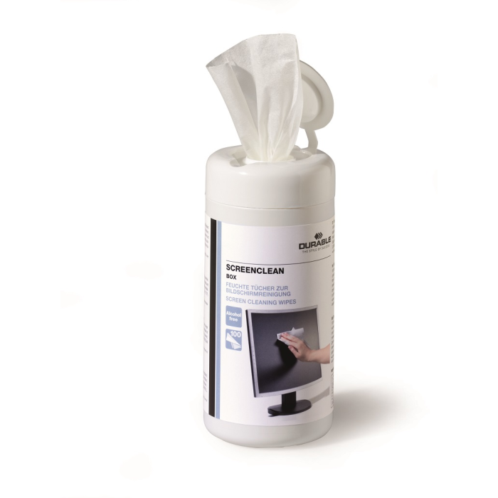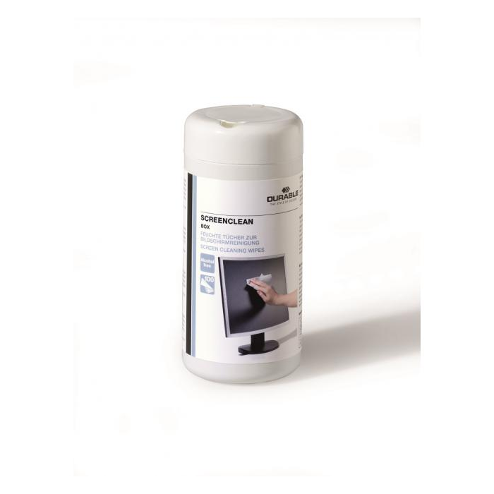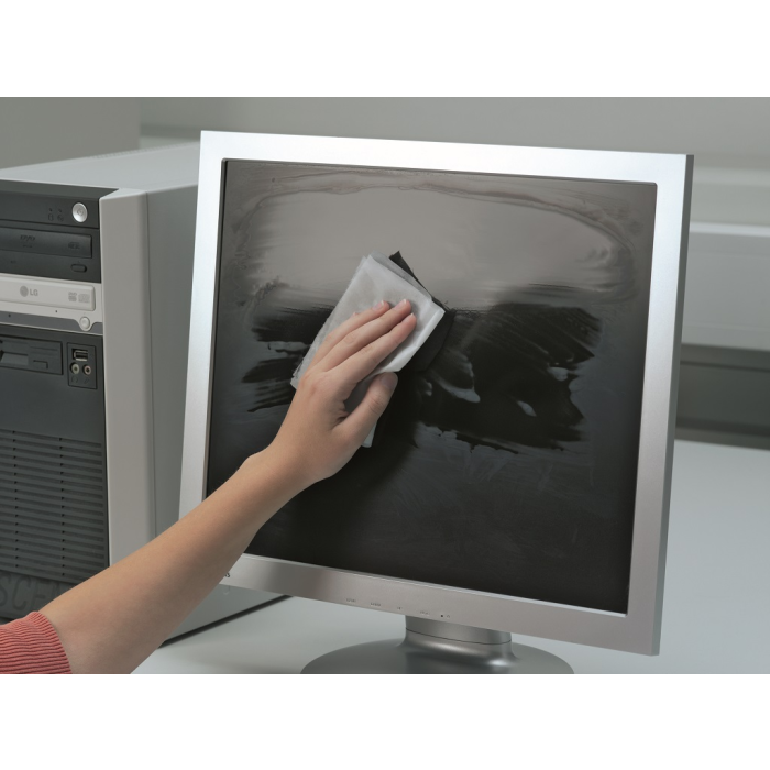 Mokré utierky balené v dóze s dispenzorom na odtrhávanie s možnosťou dopĺňania náhradnými utierkami. Sú vhodné na televízne obrazovky,monitory, notebooky, filtre a akékoľvek sklenené povrchy. Antistatické zloženie redukuje usadzovanie prachu. Bez obsahu alkoholu.V balení 100 útržkov.