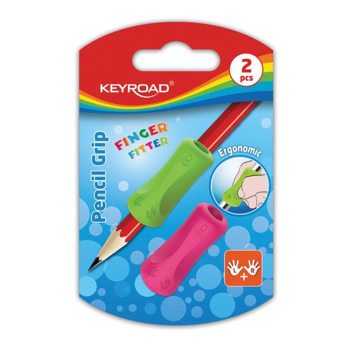 Držiak na ceruzky, pastelky, perá. Ergonomický tvar, ktorý je ideálny pre učenie sa písať. Mäkký a flexibilný, príjemný na dotyk, pre pravákov aj ľavákov. Blister 2 ks. Farba: mix farieb.