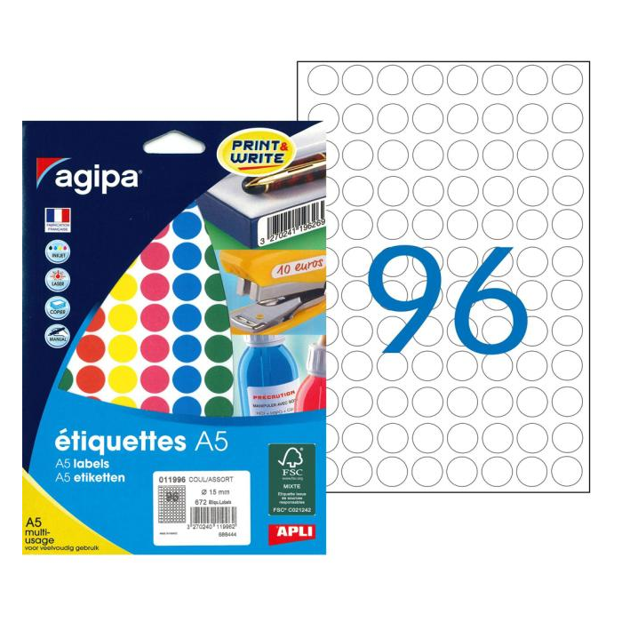 Etikety kruhové 15mm Agipa A5 mix 5 farieb