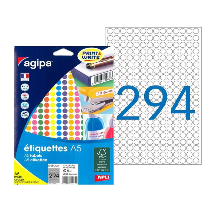 Etikety kruhové 8mm Agipa A5 mix 7 farieb