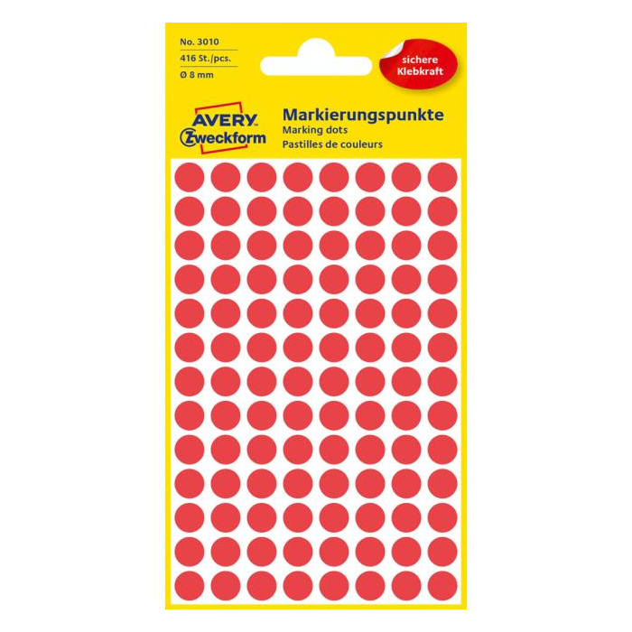 Etikety kruhové 8mm Avery červené
