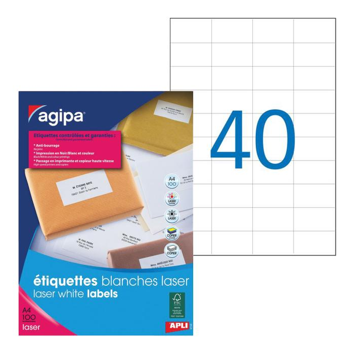 Etikety laser 52,5x29,7mm Agipa A4 100 hárkov