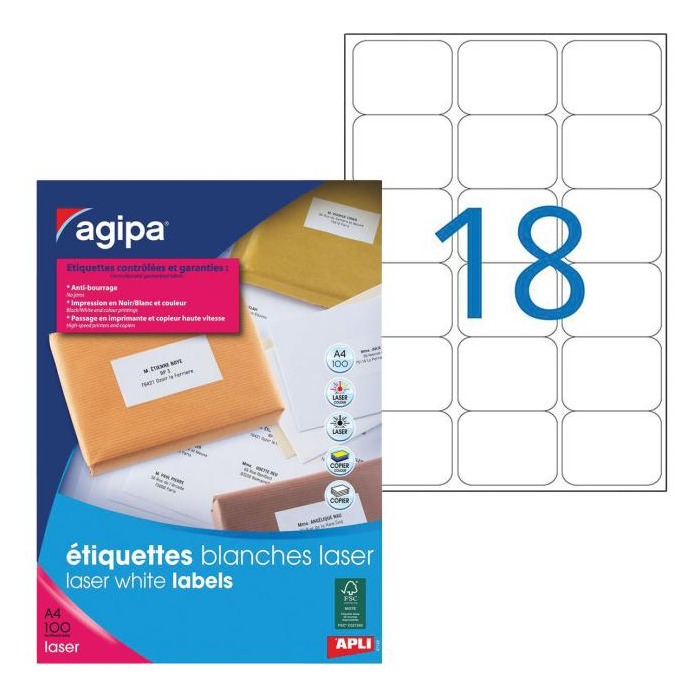 Etikety laser 63,5x46,6mm Agipa A4 100 hárkov