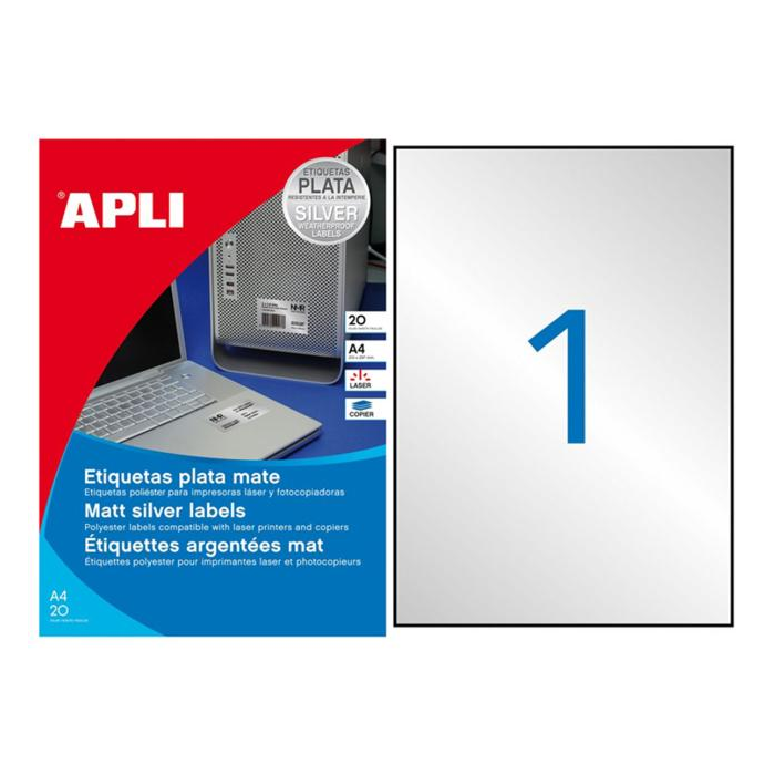Etikety polyesterové 210x297mm APLI A4 20 hárkov strieborné
