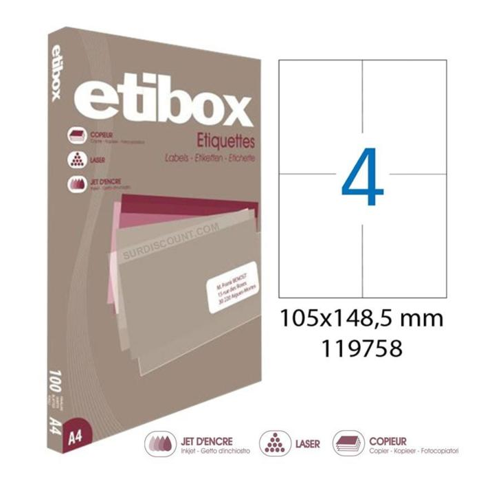 Cenovo výhodné etikety vhodné do laserových a atramentových tlačiarní, ako aj kopírovacích strojov. Rozmery: 105x148,5 mm Počet etikiet: 400 Balenie: 100 hárkov