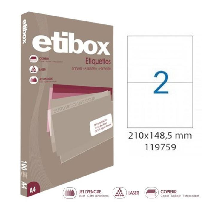 Cenovo výhodné etikety vhodné do laserových a atramentových tlačiarní, ako aj kopírovacích strojov. Rozmery: 210x148,5 mm Počet etikiet: 200 Balenie: 100 hárkov