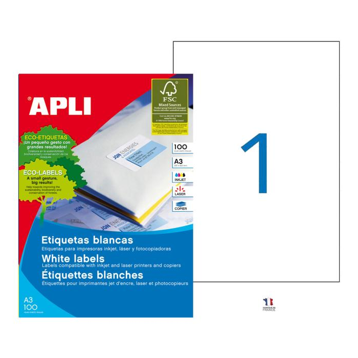 Etikety univerzálne 297x420mm APLI A3 100 hárkov