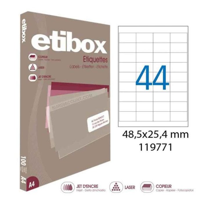 Cenovo výhodné etikety vhodné do laserových a atramentových tlačiarní, ako aj kopírovacích strojov. Rozmery: 48,5x25,4 mm Počet etikiet: 4400 Balenie: 100 hárkov