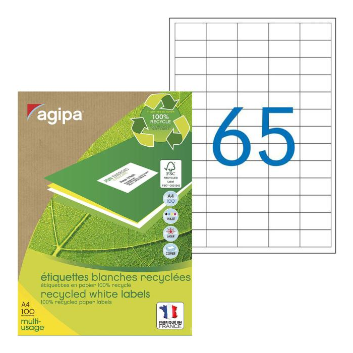 Chráňte životné prostredie! Nový rad 100% recyklovaných etikiet, chrániacich životné prostredie - 100% recyklované etikety, 100% recyklovaný obal. Lepiaci papier bez prítomnosti freónov, neznečisťujúce akrylátové lepidlo na vodnej báze a recyklovateľná plastová fólia. Vhodné do laserových a atramentových tlačiarní, ako aj kopírovacích strojov. Balenie 100 hárkov. Formát A4.