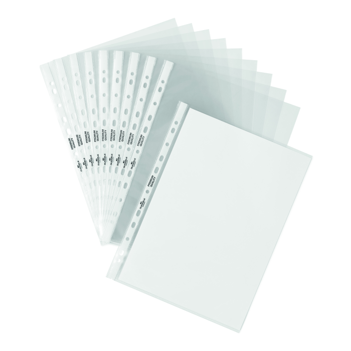 Obaly s eurodierovaním vhodné na zakladanie materiálov rozšíreného formátu A4. Povrch lesklý. Otvor zhora. Vnútorné rozmery obalu 304 × 220 mm. Balené v sáčku. Hrúbka 90 mic.. Balenie 50 ks.