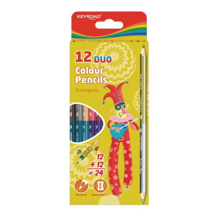 Obojstranné trojuholníkové ceruzkové pastelky, ideálne pre omaľovánky. Mäkký grafit, ľahké ostrenie. V sade 12 ks, 24 farieb. Farba: mix farieb.