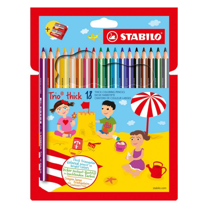 Farbičky STABILO Trio so strúhadlom, 18 ks