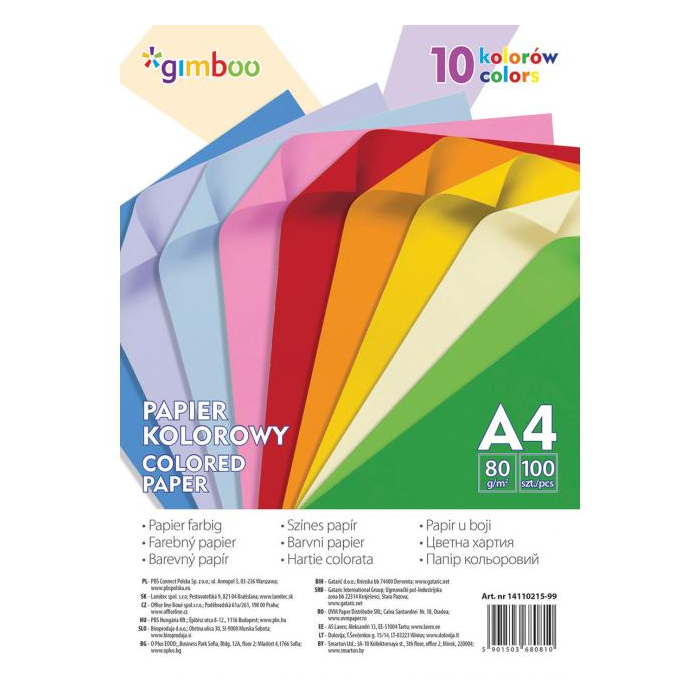 Farebný papier GIMBOO A4, 100 listov, 80 g, 10 neónových farieb