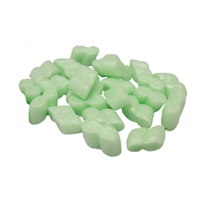 Polystyrénová drť na vypĺňanie obsahu balíkov pre ich bezpečnú dopravu. Rozmery 0,5 m3. Farba zelená.