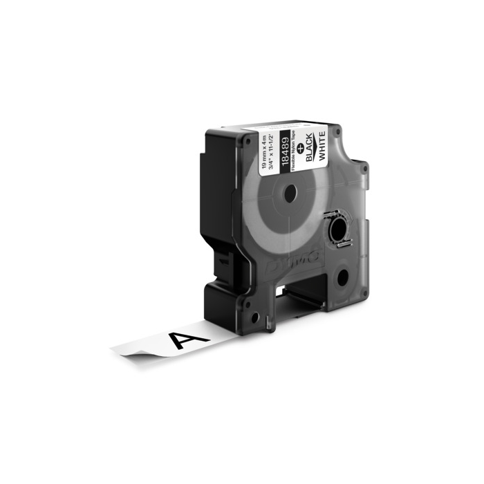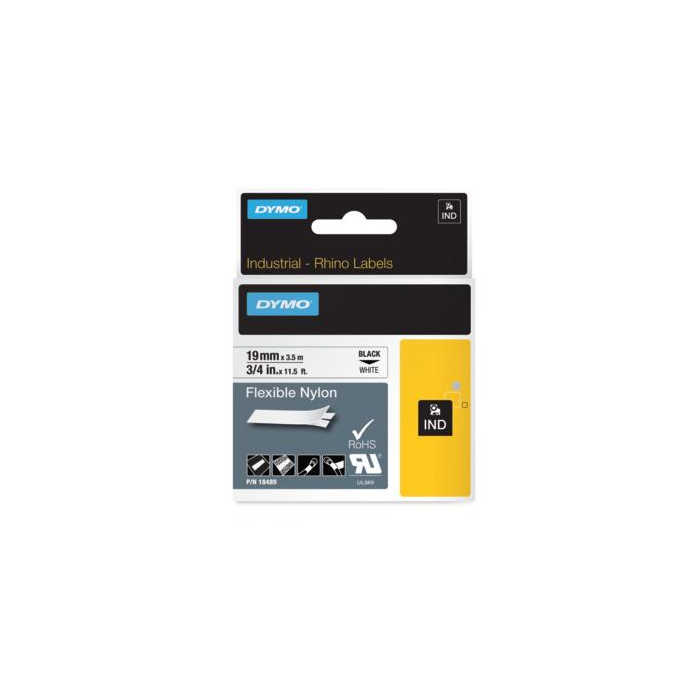 Pásky z flexibilného nylonu sú určené do etiketovacích zariadení DYMO radu Rhino a LM s aplikáciou v uzavretých priestoroch. Sú špeciálne vyvinuté na označovanie vodičov, káblov a strojov na zakrivené a rovné povrchy. Odolávajú rozdielom teplôt a ultrafialovému žiareniu. Dĺžka pásky 3,5 m. Farba pásky biela, čierne písmo. Šírka pásky 19 mm.