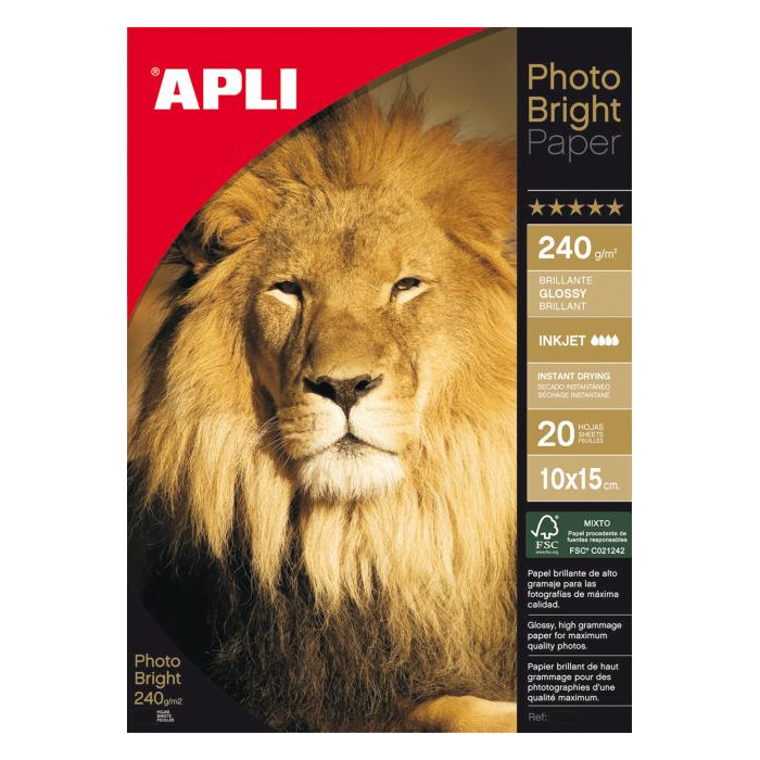 Kvalitný foto papier. Po technickej stránke má 5 vrstiev, ktoré zabezpečujú, aby mal papier dôležité charakteristiky, ako je rýchle schnutie, či ochrana tlačených fotografií. Okrem papierovej bázy a štandardnej vrstvy na prijímanie atramentu je tu vrstva, absorbujúca vodu, 2 PE vrstvy a vrstva zabraňujúca vlneniu papiera. Tento typ papiera je ideálny na tlač fotografií jasných farieb, vysokej kvality a profesionálnej úpravy.Gramáž značí váhu papiera na štvorcový meter materiálu. Platí pravidlo, že čím je gramáž vyššia, tým papier dosahuje väčšiu stabilitu a je tvrdší.Papier s certifikátom PEFC (Program for Endorsement of Forest Certification Schemes) potvrdzuje, že drevo, ktoré bolo použité na výrobu papiera, pochádza z lesov, obhospodarovaných trvalo udržateľným spôsobom.Univerzálny, vhodný do atramentových tlačiarní rôznych výrobcov. Gramáž 240 g. Balenie 20 hárkov.