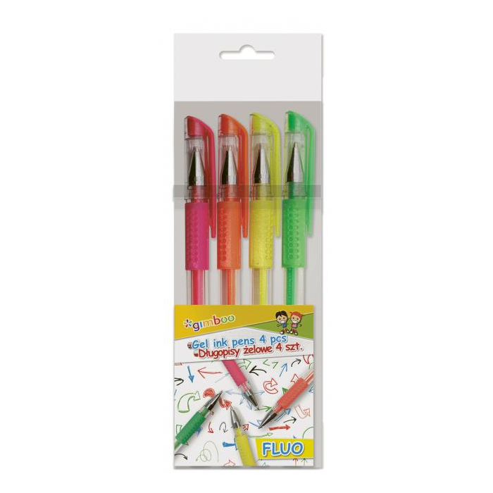 Gélové perá Gimboo 0,5 mm fluorescenčné farby, 4 ks