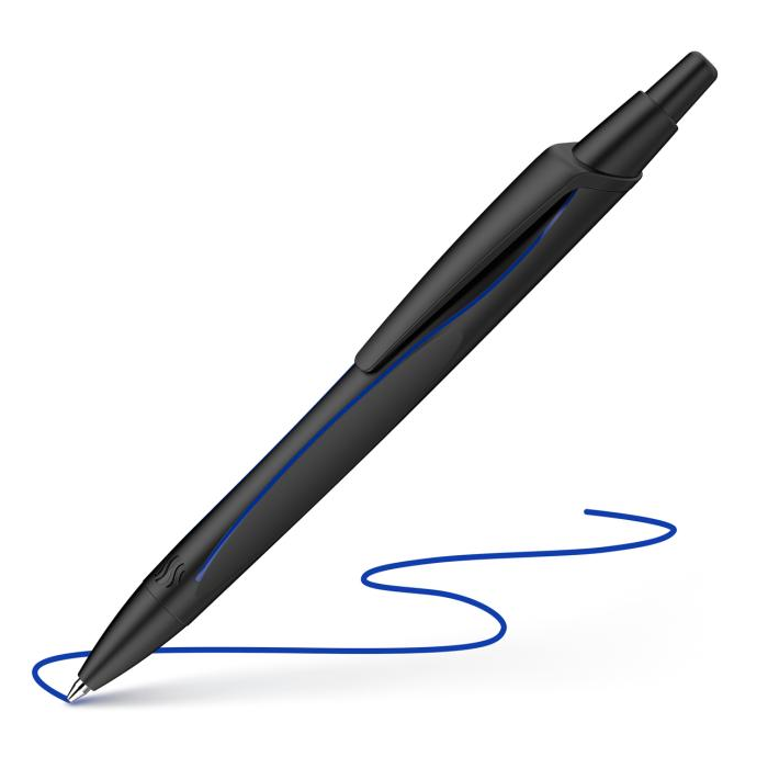 Guľôčkové pero Schneider Reco M, farba čierna s modrou náplňou.