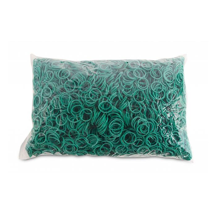 Odolné a pružné gumičky vyrobené z materiálu s prímesou gumy (60 %). Rozmery (hrúbka × šírka) 1,5 × 1,5 mm. Priemer 20 mm. Farba zelená.