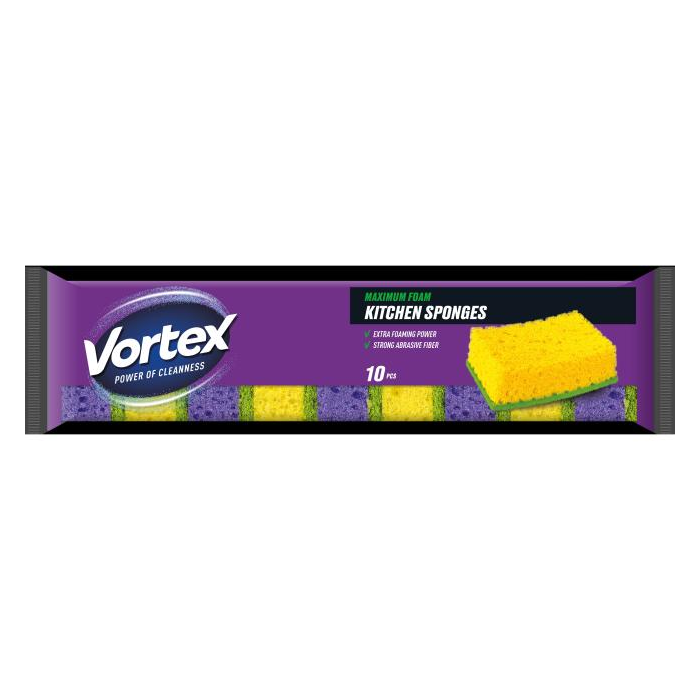 Vortex` MACROPOROUS kuchynské špongie, na jednej strane makropórovitá pena a na druhej silné čistiace abrazívne talianske vlákna, ktoré ľahko odstránia nečistotu z riadov. Vytvárajú veľké množstvo jemnej peny, 10 ks.