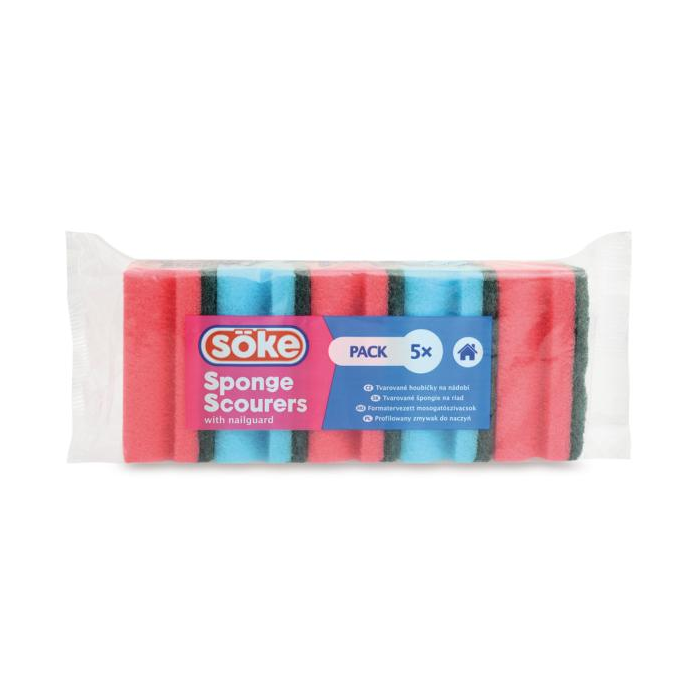 Hubka špeciálne tvarovaná pre ochranu nechtov so zelenou abrazívnou vrstvou na účinné umývanie hrncov. Balenie 5 ks. Rozmery 4 x 6,5 x 8,5cm
