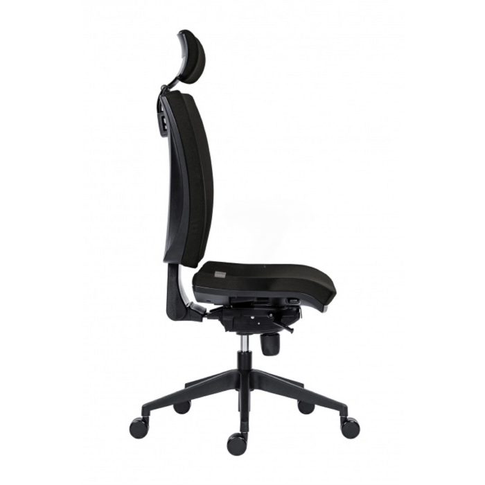 Kancelárska stolička s podhlavíkom bez podrúčok, s funkciou posuvu sedáku.