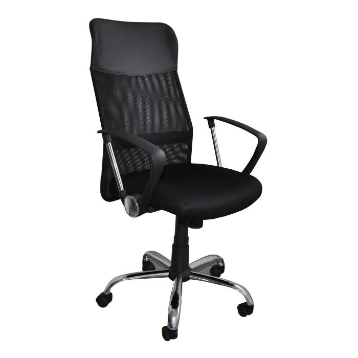 • kancelárska stolička čalúnená sieťovinou v kombinácii s eko kožou čiernej farby