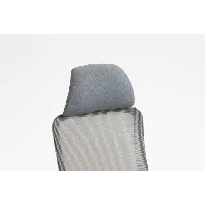 • ergonomická otočná kancelárska stolička s vysokým sieťovaným operadlom, látkovým čalúneným sedákom, opierkou hlavy a podrúčkami