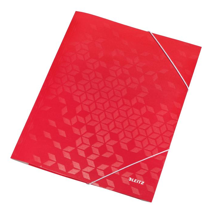 Obal s tromi chlopňami a elastickými gumičkami rady WOW v žiarivej farbe zo špeciálneho kartónu s perfektným farebným efektom. PP laminácia chráni farby a dáva výrobku lesklý vysokokvalitný vzhľad. Kapacita 250 listov. Farba: červená.