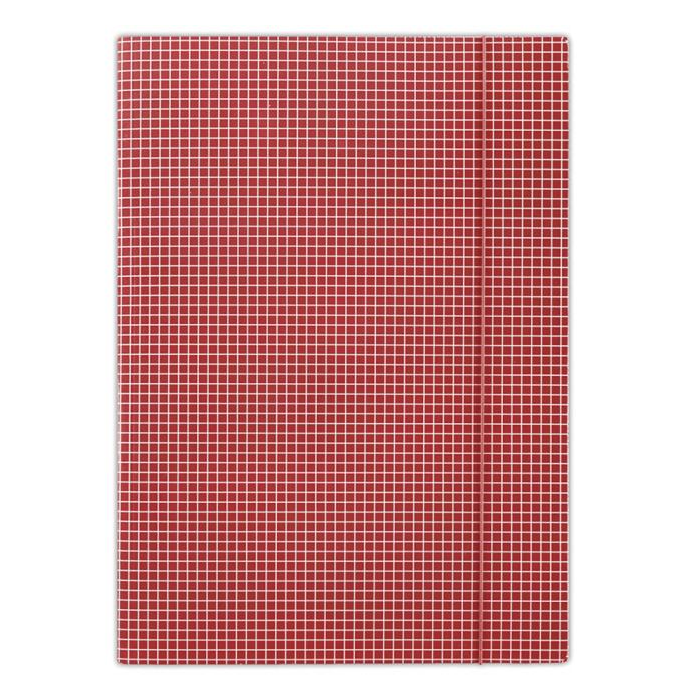 Kartonový obal vyrobený z lepenky s hmotnosťou 400g. Jednostranne potiahnutý vysoko lesklým tlačovým lakom, okrúhla vertikálna guma vo farbe obalu chráni obsah pred vykĺznutím. Károvaná potač. Formát: A4. Farba červená. Rozmery 232 x 317 mm.