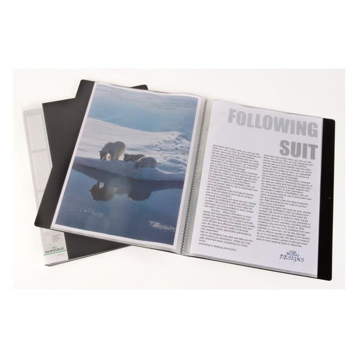 Prezentačná katalógová kniha formátu A4 vhodná do kancelárie, na výstavy a obchodné prezentácie. Dosky z tvrdeného polypropylénu, popisovateľná a vymeniteľná chrbtová etiketa. Počet obalov 30.