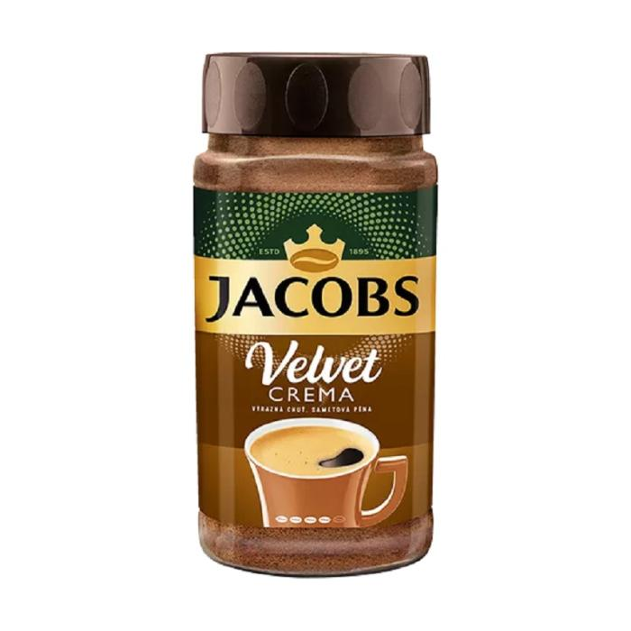 Instantná káva Jacobs Velvet s jemnou penou a bohatou chuťou. Hmotnosť 200 g. Zloženie: 100% instantná káva. Balené v ochrannej atmosfére. Skladovať na suchom a chladnom mieste.Návod na použitie: 1-2 lyžičky (1,7g) zaliať 200 ml horúcej vody (85°C). Stačí na prípravu 120 šálok. Pohár - Sklo - štandardne recyklované. Pôvod Veľka Británia.Výrobca Jacobs Douwe Egberts Netherlands, Oosterdoksstraat 80, 1011 DK Amsterdam Holandsko, 0800 500 199.