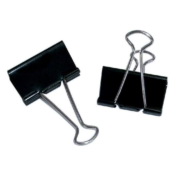 Klipy čierne v šírke 15 mm na zopnutie papierov. V balení 12 ks.