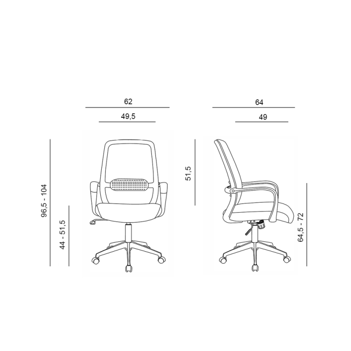 • konferenčná stolička so stredne vysokým, sieťovaným operadlom