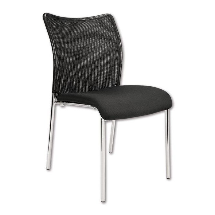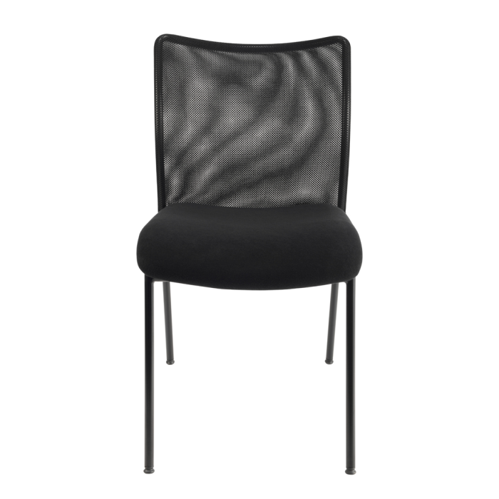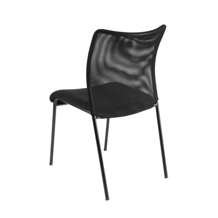 • Stohovateľná konferenčná stolička s látkovým sedákom a sieťkovým operadlom moderného dizajnu.
